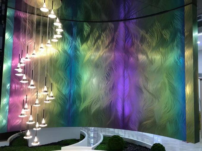 rainbow brushed stainless steel decorative panels, perfect for elevating the ambiance of your hotel lobby.