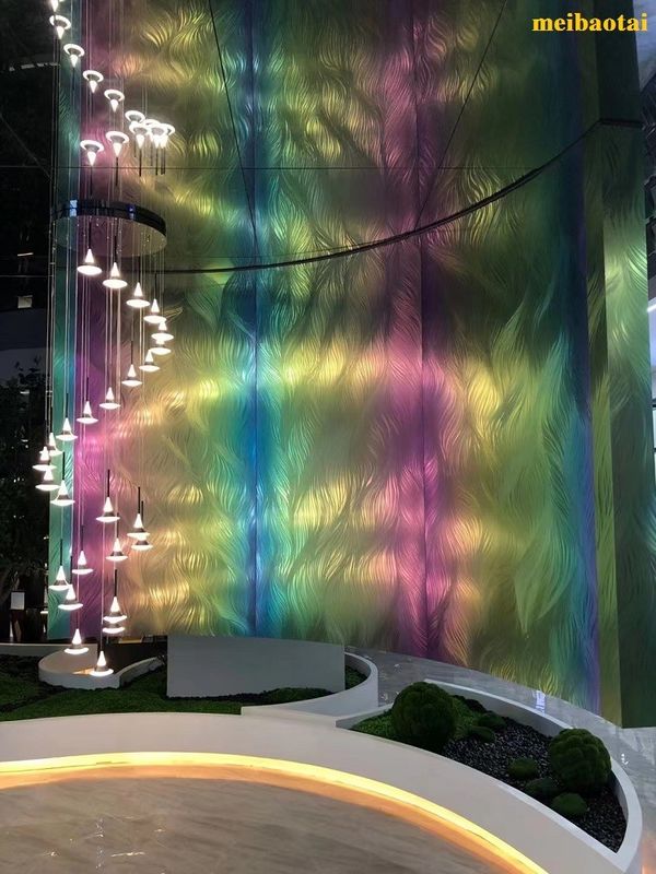 Pasillo inoxidable modificado para requisitos particulares de gama alta de la decoración de la hoja de acero del color del arco iris del modelo del laser