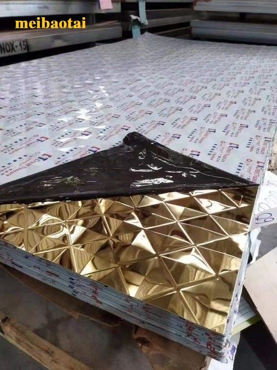 Diamante de espejo de oro, patrón cuadrado en relieve placa de acero inoxidable placa de decoración